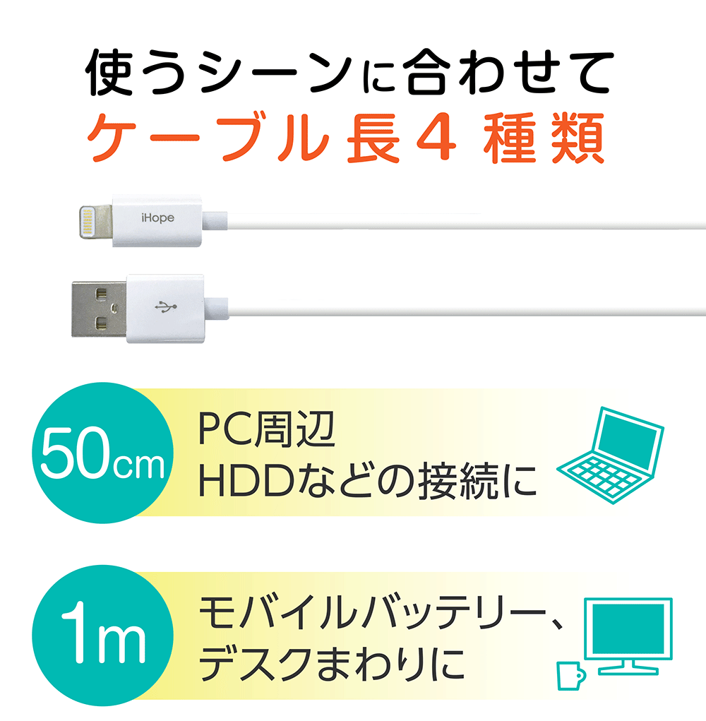 Lightningポートを搭載したiPhone、iPad、iPodにお使いいただけます。