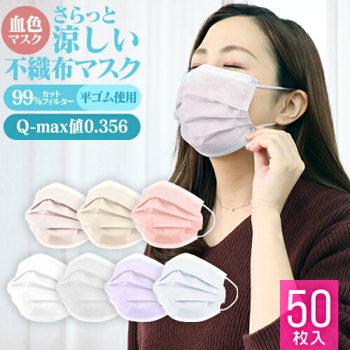 ★今の秋にピッタリの 血色マスク ★【送料無料】血色マスク 不織布 カラー 血色カラー マスク 50枚 涼しい 不織布マスク カラー やわらかマスク カラーマスク おしゃれマスク ふつう 小さめ 子供マスク 使い捨て 接触冷感 Q-Max0.356 WEIMALL 送料無料