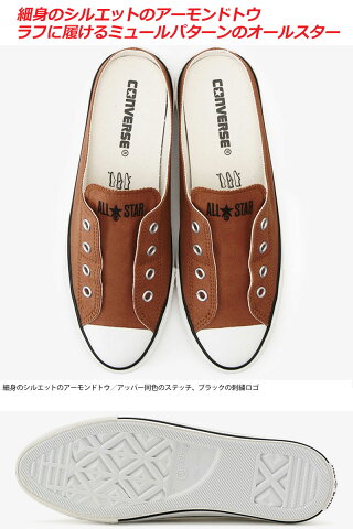 細身のシルエットのアーモンドトウ、ラフに履けるミュールパターンのオールスター。