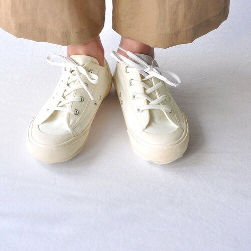 履き込むほどに風合いが増していく、オーガニックコットンのアッパー、 少し大きめなシルバーのアイレットがアクセントに。
