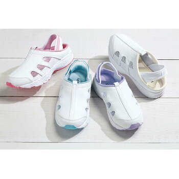 サイドホールで快適2Way 元祖・定番2Wayシューズといえばコレ!ここが違う!【こだわりポイント】 ・クッション性のある、ふんわりヒール ・粗めのメッシュで通気性のいいサイドホール ・しっかり履けるバックベルトは、サボにもなる2Way ・足当たりのやさしい履き口 ・合皮素材で甲をしっかりガード ・つまずきにくいトゥーガード ・かかと部分はグリップ性の高いラバー加工 ・片足約165gの軽量! ・ワイドな幅広4E ・ホワイト・ネイビー・サックスは28cmサイズまで揃う男女兼用です。