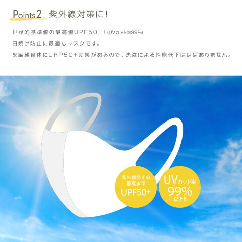 紫外線対策に! 世界的基準値の最高値UPF50+!日焼け防止に最適なマスクです。